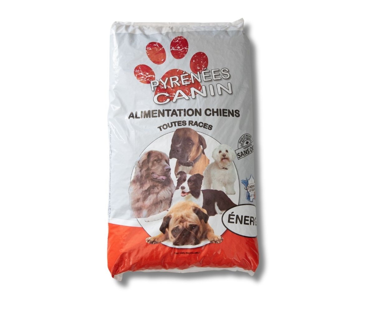 Pyrénées Canin fabrique ses croquettes depuis 2011 avec des matières premières principalement du Sud-Ouest. Les protéines animales proviennent d'Auterive (31) et Rion-des-Landes (40). Le canard, le riz, le maïs et le blé sont sourcés localement. Chaque sac porte un numéro de lot et une composition détaillée.