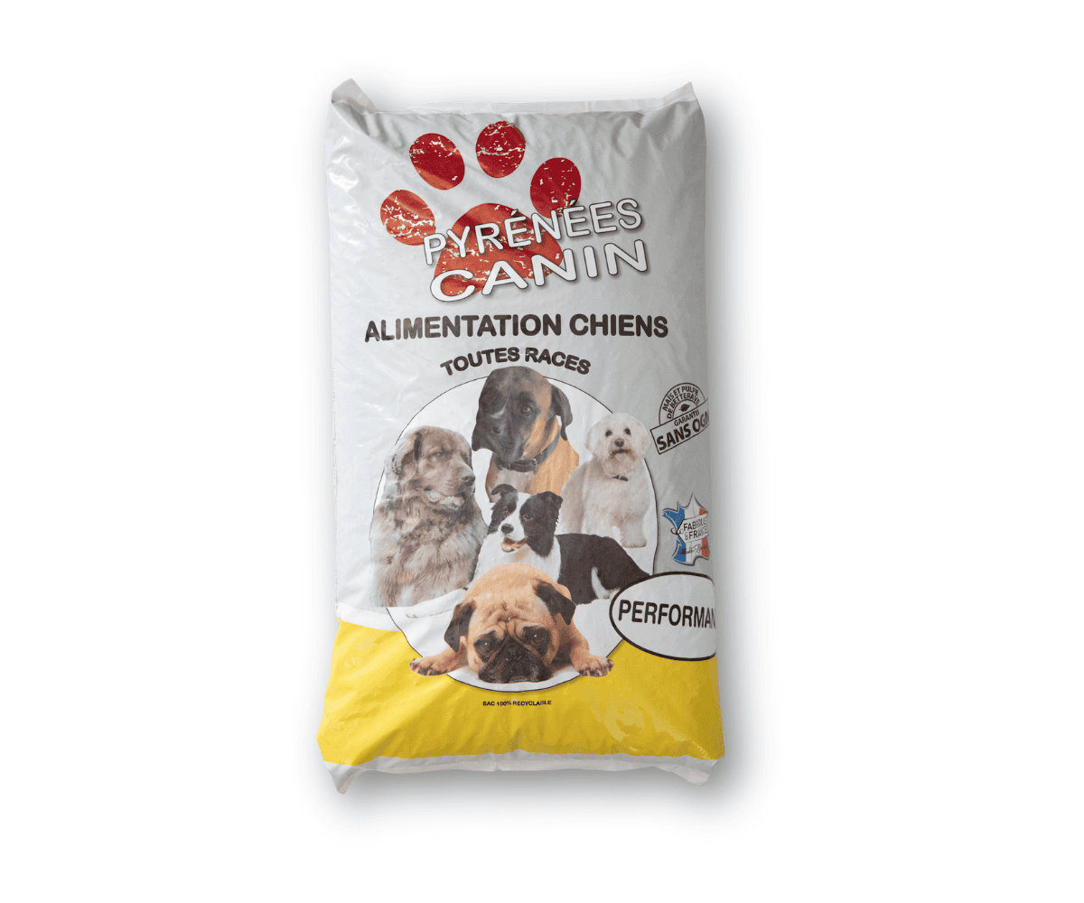 Le Premium Performance 28/14 est conçu pour les chiens qui ont besoin d'un apport protéique élevé : grandes races à l'âge adulte et jeunes chiens en plein développement musculaire. Fabriquée à Laméac dans les Hautes-Pyrénées, cette recette soutient les chiens à forte activité quotidienne avec une formule enrichie en vitamines.