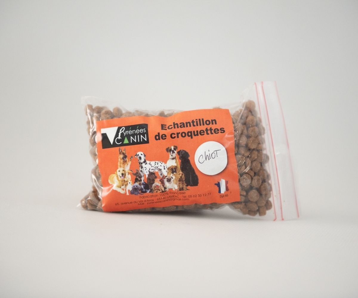 Échantillon de 200 g pour tester les croquettes Premium Chiot 28/15 avant de commander un grand format. Vérifiez l'appétence et la tolérance digestive de votre chiot. Farine de canard pour une excellente digestibilité, fabriquées à Laméac, 100% des ingrédients sont français.